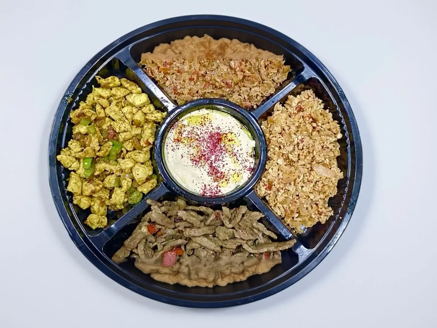 بوكس عربي يحتوي على كبدة مقلقل دجاج شكشوكة حمص تونة