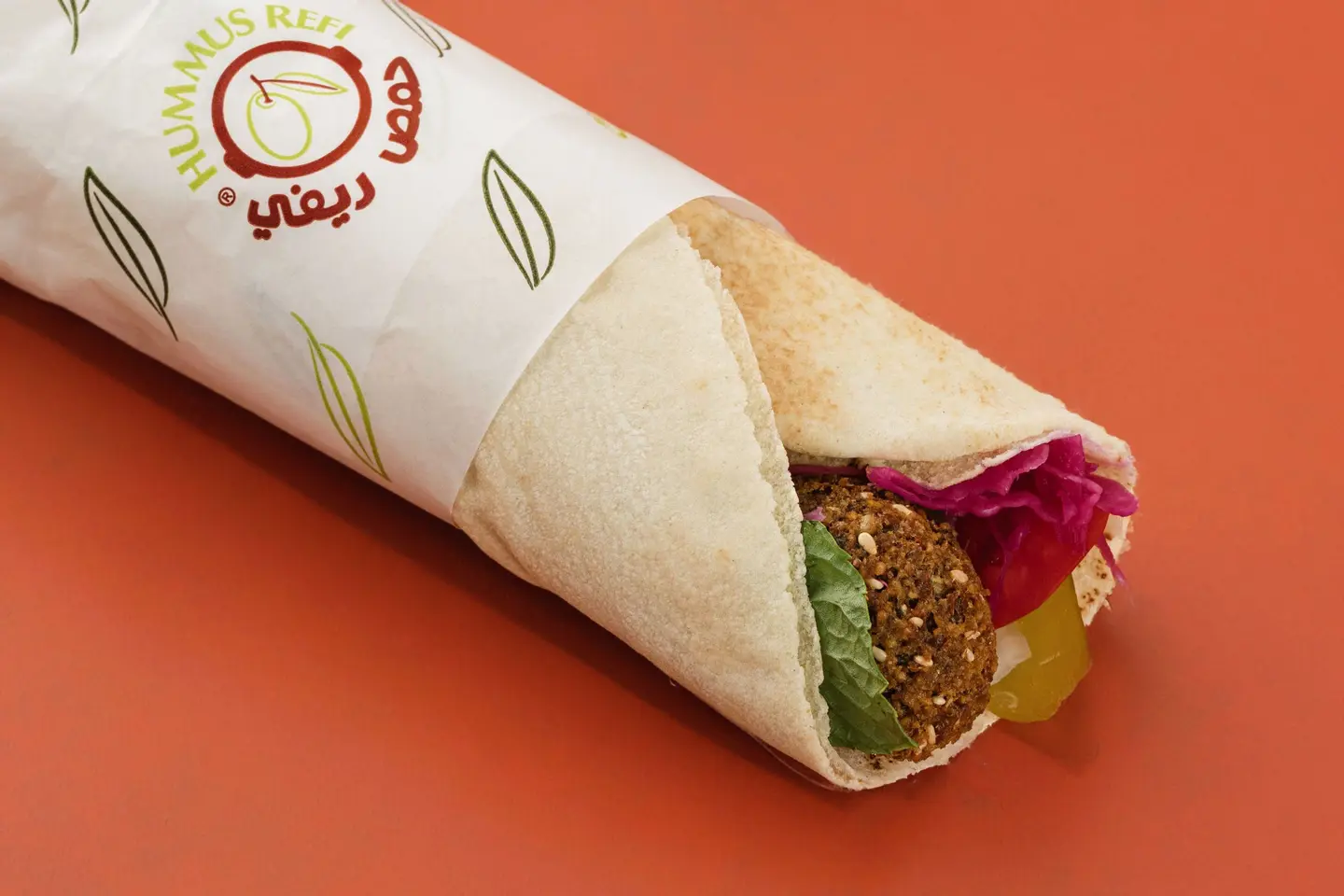 فطيرة فلافل في خبز التوتيلا المحمص مع صوص احمر مميز