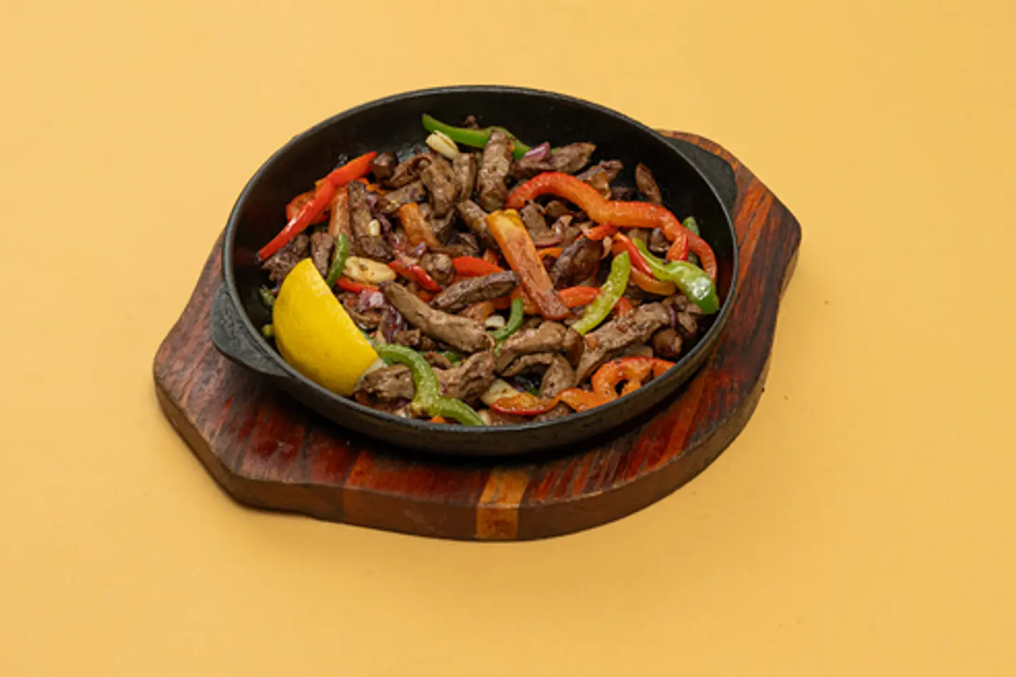 كبدة مقطعة ومطبوخة مع الفلفل البارد الملون بالاضافة للبهارات