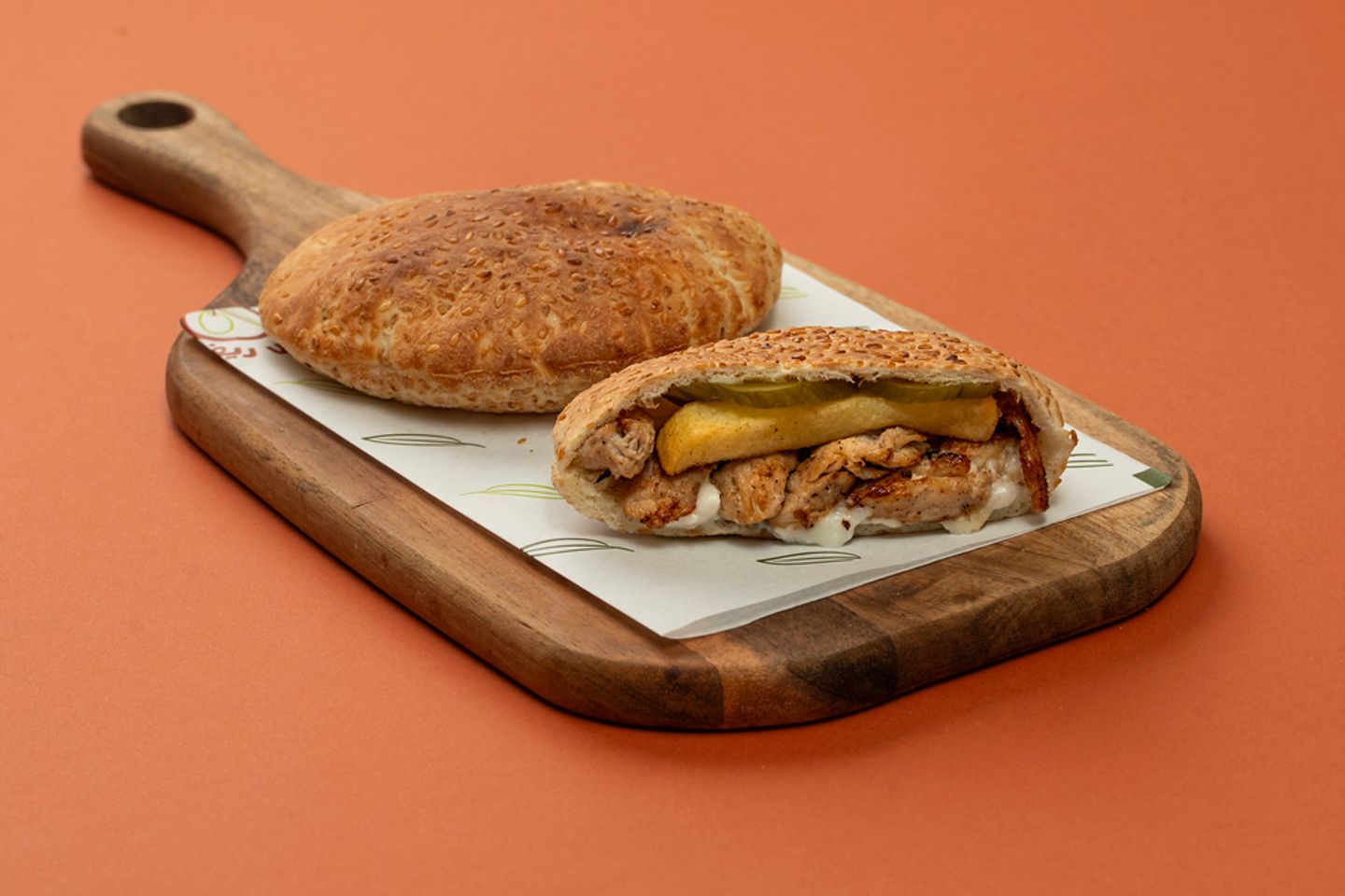 ساندويتش الفلافل الشهي بخبز طازج مع إمكانية اختيار مكوناتك المفضلة مثل الحمص، الطماطم، الباذنجان، البطاطس، والصلصات المتنوعة. اصنع نكهتك الخاصة واستمتع بتجربة فريدة كل مرة