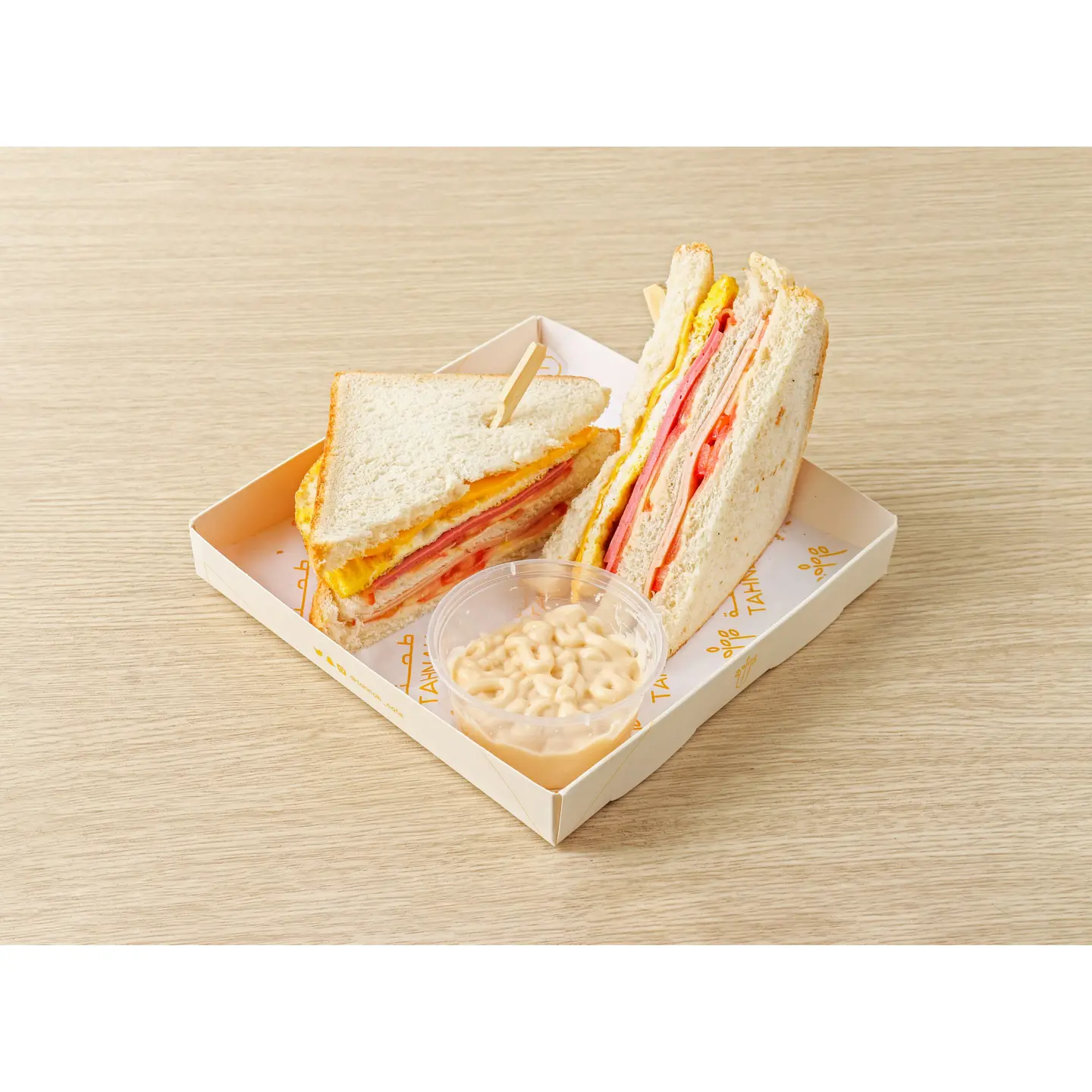 مورتديلا لحم و دجاج و شرايح الجبن و بيض و طماطم و خس