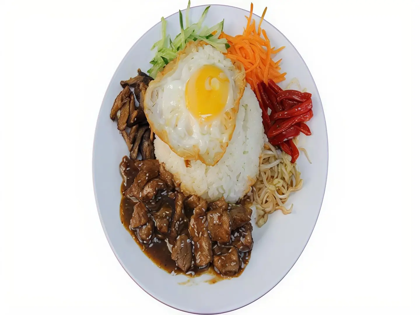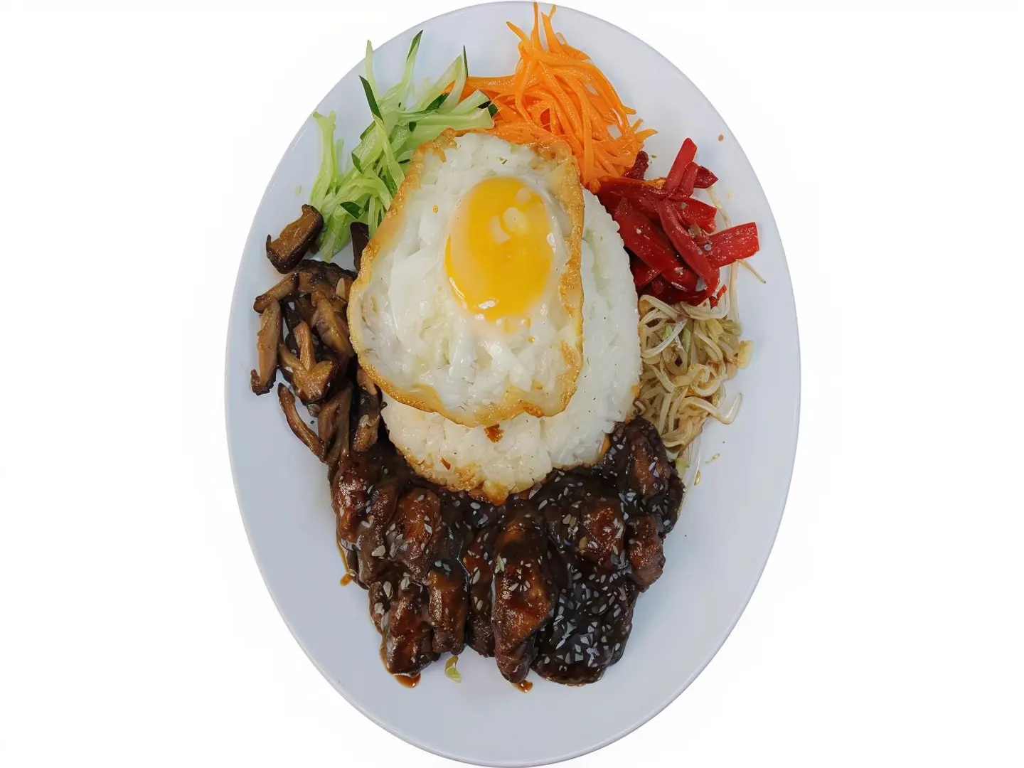لحم بيبيمباب الكوري الذي يقدم مع الخضروات