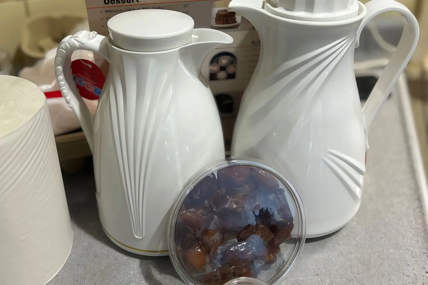 1 thermos for arabic coffee 1 thermos for steam tea 1 dates of salvation 1 tahini price before discount 112 after discount 99