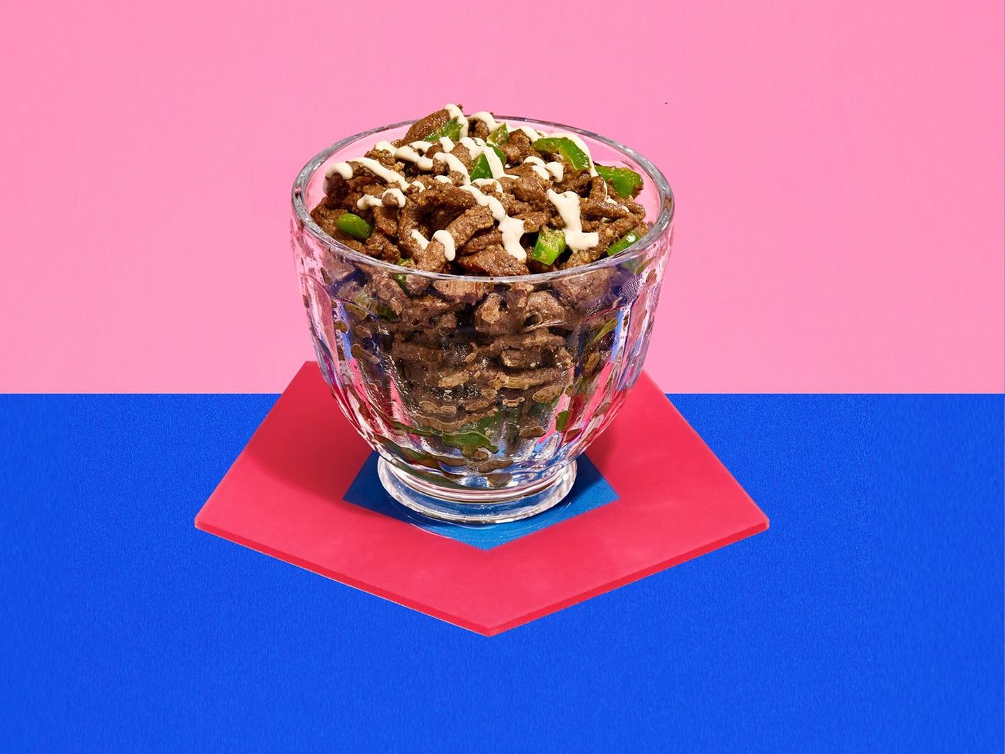 Tamarind-marinated shredded chicken, diced tomatoes, sautèed onion, bell peppers, pickled beetroot, pickled cucumbers, arugula, parsley, tahina